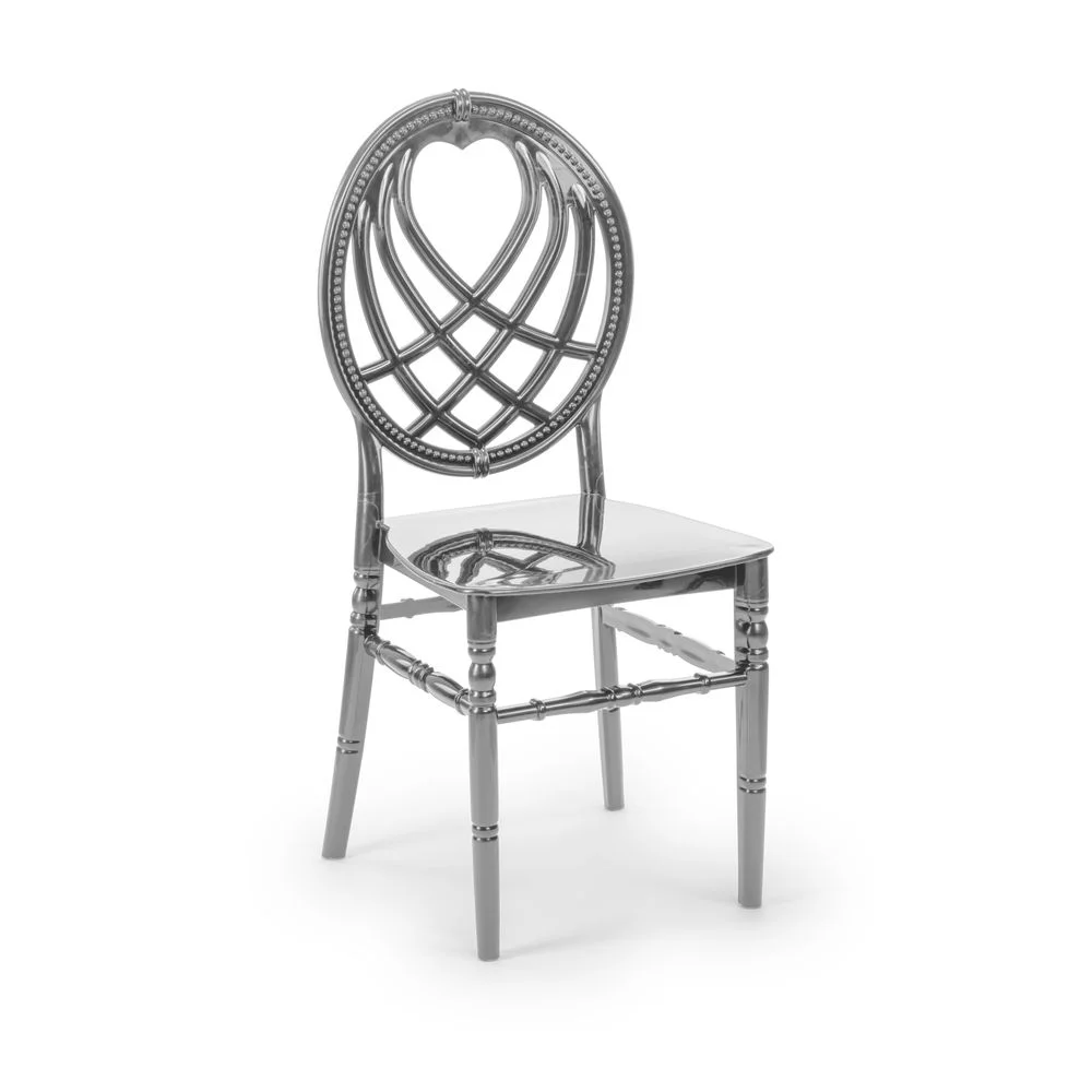 Ovālā atzveltne ar sirds rakstu ir iezīmes, kas padara CHIAVARI KING krēslu par ideālu izvēli kāzām un kāzu svinībām. Tā smalkā forma atspoguļojas arī produkta vieglajā svarā, kas ir tikai 3,8 kg . Tas padara CHIAVARI KING par praktisku risinājumu HoReCa iestādēm, jo tas atvieglo telpas interjera sagatavošanu un samazina tā ieviešanai nepieciešamo laiku.