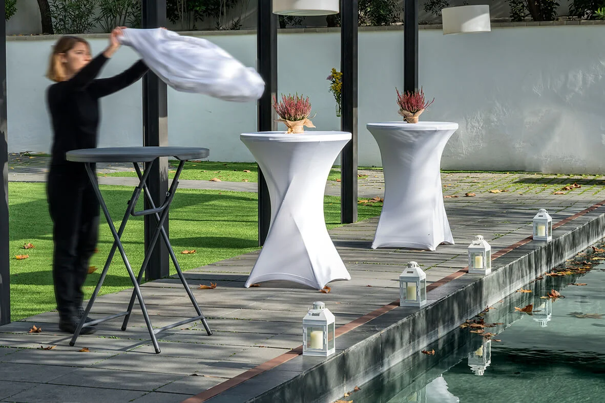Šis saliekamais galds ir ideāls risinājums stāvus pasākumiem. Ļoti viegli uzglabāt un uzstādīt.