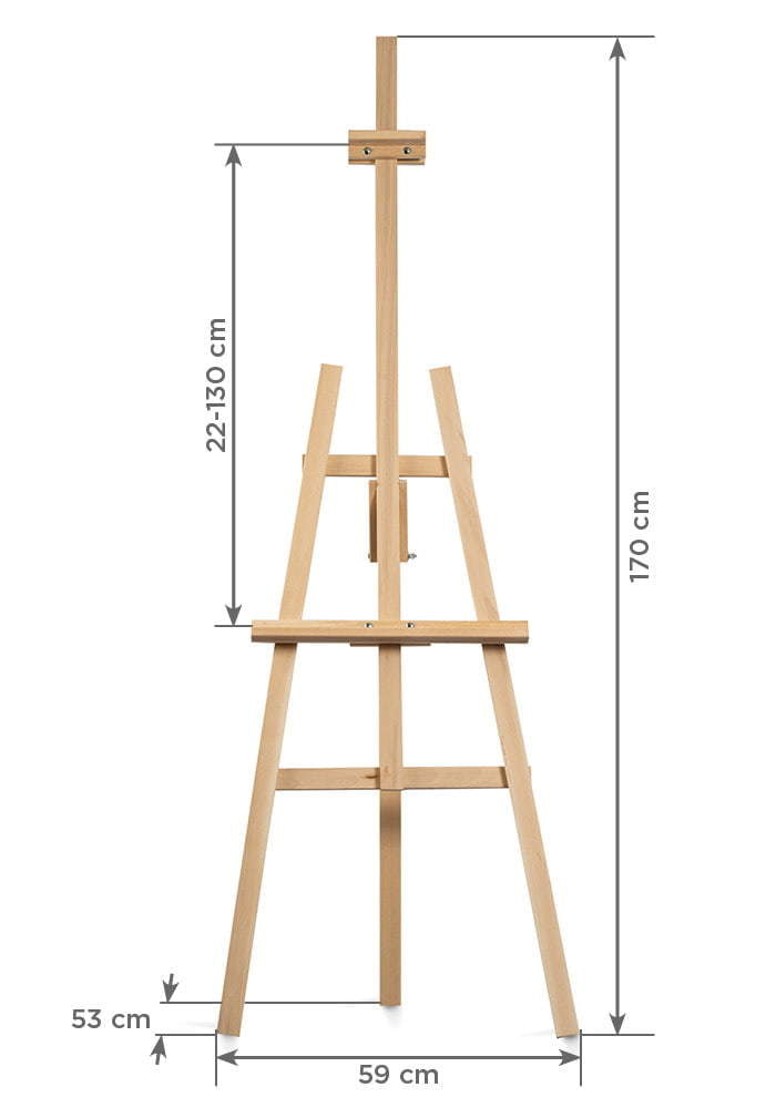 Puinen molbertti erittäin vakaalla ja kevyellä rakenteella. Jokainen elementti on valmistettu yhdestä pyökkipuupalasta, mikä takaa tuotteen korkean laadun ja pitkän käyttöiän.