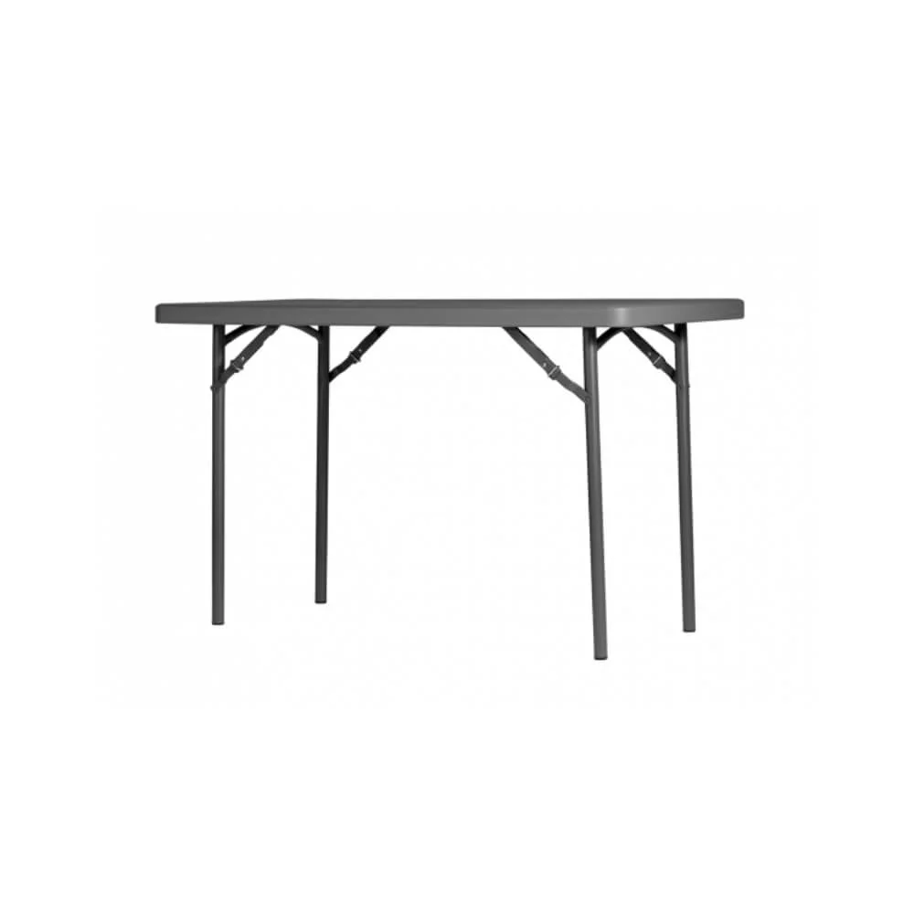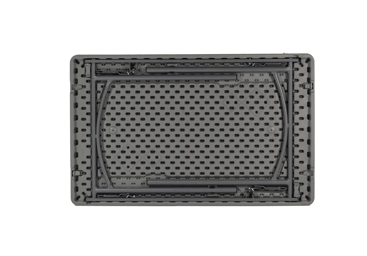 Praktisks un izturīgs salokāms galds, kas piemērots gan lietošanai iekštelpās, gan ārā. Galda virsma ir rūdīta un pulverkrāsota, padarot to ļoti izturīgu un ūdensnecaurlaidīgu. Galda kājas ir nofiksējamas, kas nodrošina galda stabilitāti un izturību pat novietojot priekšmetus vai vēja gadījumā.